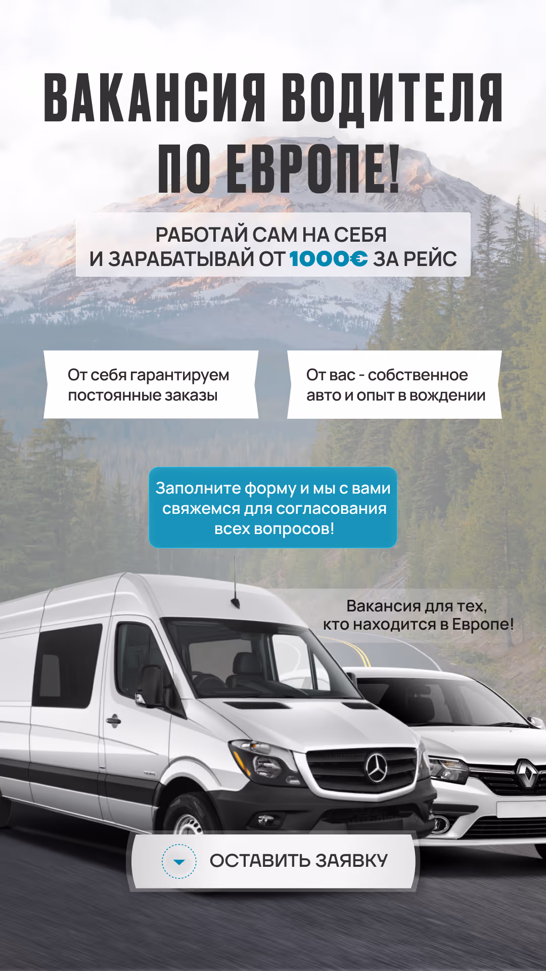 Клієнт — транспортна компанія, яка здійснює перевезення по Європі. Основна задача — знайти кваліфікованих водіїв.