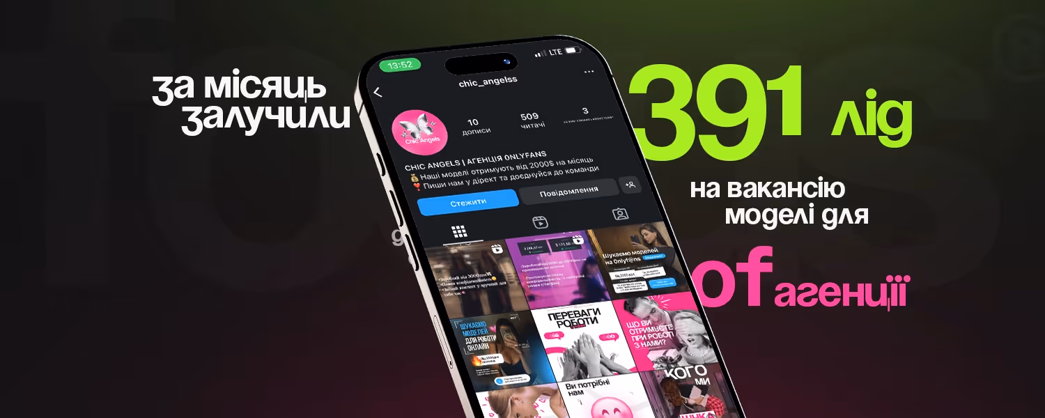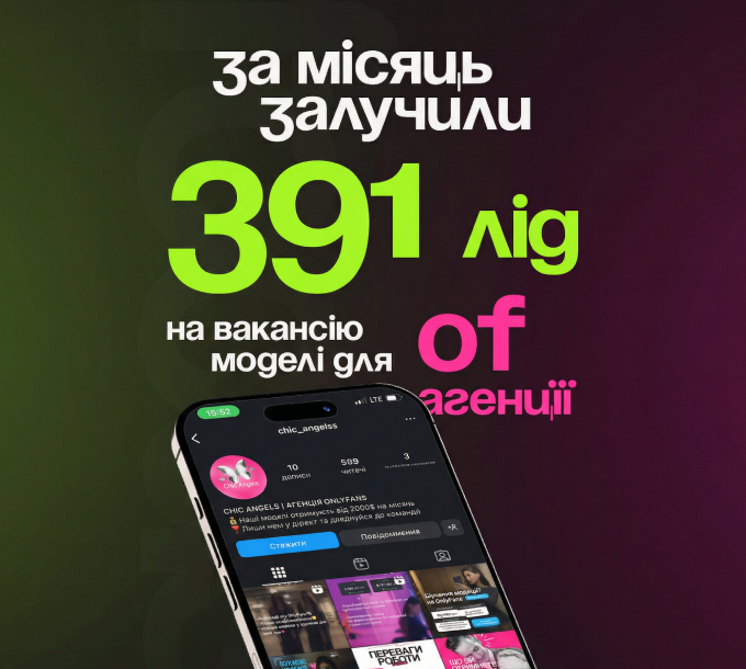 За місяць залучили 391 лід на вакансію моделі для OF агенції